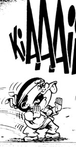 La classica battuta finale di tutti gli episodi televisivi di Nick Carrter, in un disegno di Bonvi ![]() La primissima e rarissima apparizione di Ten in un fotogramma realizzato per la prima avventura, "Il mistero dei 10 dollari", tra il 1969 e il 1970, con un Ten quasi irriconoscibile che, durante l'avventura, arriva ad assumere la sua definitiva fisionomia.